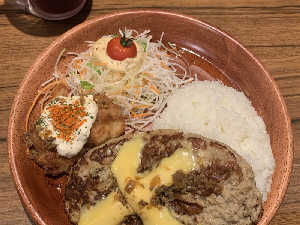 期間限定なので食べなきゃ!ハンバーグデカすぎ。