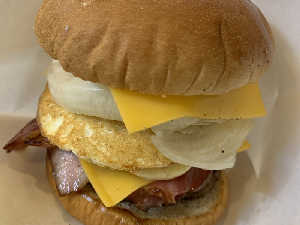 バンズがかなり小さい、ベーコン自家製、マヨネーズ自家製(多分)なので美味しい