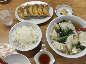 焼き餃子と水餃子+ご飯
