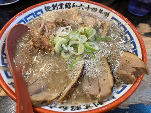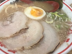 豚骨ラーメンに軟骨と炙りチャーシューが乗った肉肉しくて大満足できる!