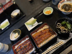 ふっくらな関東風と、パリッとした関西風の鰻重が一緒に楽しめるセット。サウナの後の鰻って贅沢。