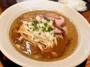 大山豚と大山どりでとったスープの鳥取和牛の牛脂が浮かぶ。