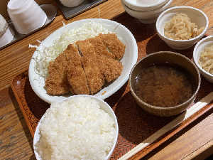 旨かったがトンカツは飲み物ではない。 小鉢が3種類選べるし満足🐷