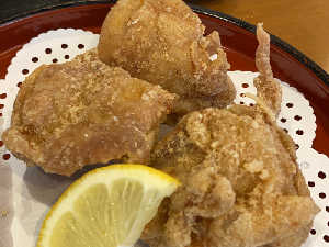 運よく少し待ちして入れた!ここに来たらやっぱりからあげ!運ばれて来るからあげがすごすぎて、びっくり!
