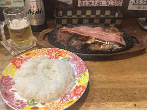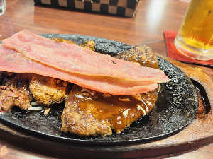 ニンニクスライス入り醤油ガーリックソース/エノキ入りデミグラスソース生クリームがけ 瓶ビール
