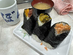 平日朝なのに行列できてた どれも美味しい、特に鮭🍙🐟️