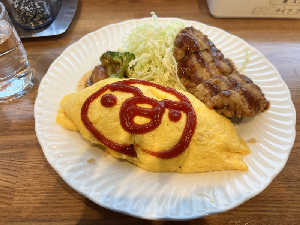 サ前飯。行きたかった老舗洋食屋。 ケチャップアートがかわいらしい。 味は至って普通の昔ながらの洋食。