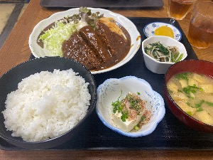 ポスターにもなってた定食。見た目とは裏腹に洋食的でオシャレ。そして旨い。