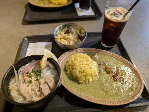 グリーンカレーと鶏のフォー めちゃくちゃ美味しかった!