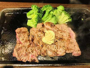 250gをミディアム焼き! ワサビやマスタード、ソース等で味変しながらいただきました~♪