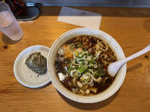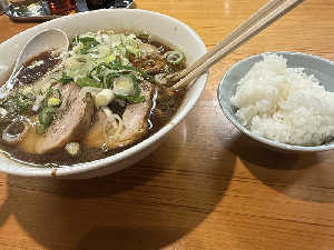 醤油味。 めちゃ美味い。富山ブラックでは無く旭川らーめんらしい。塩味も強いが旨味も強い。