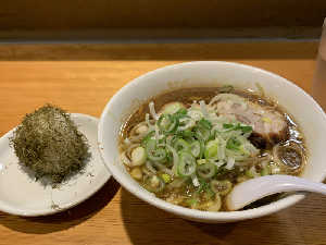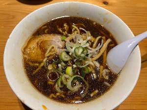 醤油味。 めちゃ美味い。富山ブラックでは無く旭川らーめんらしい。塩味も強いが旨味も強い。