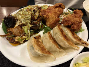 回鍋肉、餃子、ザンギ、漬物、味噌汁、ライスと色々食べれて美味しい☺
