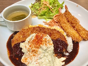 ボリューム満天✨トッピングはノーマルに、カツ&エビフライで😋