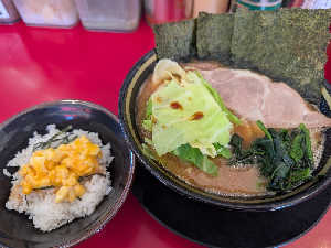 固め濃いめ多め、味玉、穂先めんまトッピング。うまい!