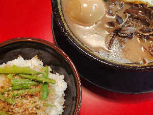 固め濃いめ多め、味玉、穂先めんまトッピング。うまい!