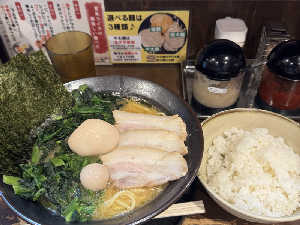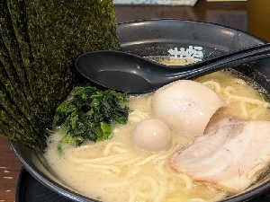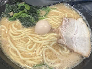 訳あり味玉・海苔トッピング。固め普通多め。中太麺
