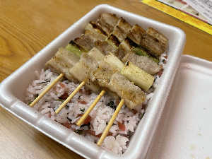 タレじゃないやきとり弁当はじめて 塩だと完全に豚バラ串だな