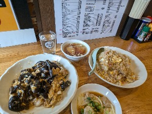 今日のチャーハンパラパラ気味、ワンタン、スープ内具材サービスありがとうございました。