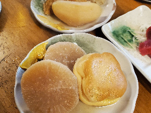 うめやきと大根が味しみしみでおいしかった!通なかき揚げの食べ方も教えてもらって実食もした!
