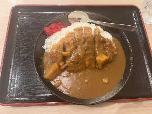 辛さ控えめカツカレー。 衣が剥がれない美味しいカツ。 野菜も大きく美味しゅうございました。