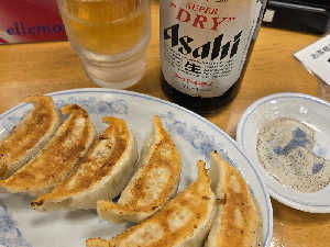 生中+餃子+冷菜が付いて950円。当然一杯では足りず、もぅ一杯おかわり。餃子は安定した美味しさ