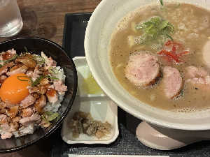 炙り鶏叉焼と味玉トピ、満足度が高い1杯、鶏白湯の銘店が朝ラーやってる幸せ、今度は塩を食べたい