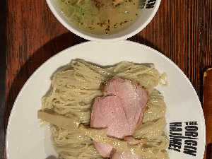 平打ち麺と塩のつけだれがよい。特盛はフードファイトになる笑