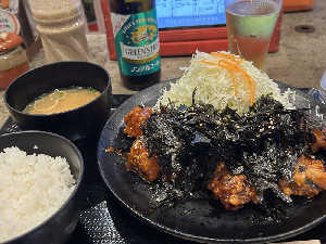 ハーフ&ハーフ。今ここの唐揚げが松山で1番美味しいと、思ってる。サウナの前後は油もの!サイコーー✨✨
