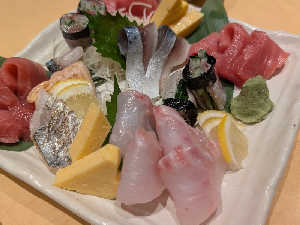 生ビール、寿司各種、茶碗蒸し、あおさ汁