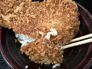 新感覚なカツ丼でした、あまじょっぱいたれがカツの裏面に染みている感じ。