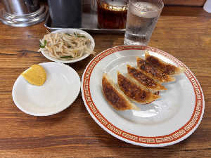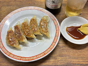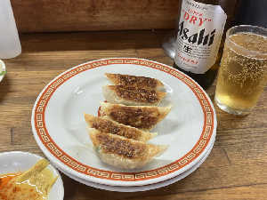 餃子は5枚ずつ焼いてくれるので焼きたてが食べれて最高、ガツンとキマる。