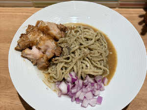 ペペロンチーノの煮干ラーメン版らしいが、煮干まぜそばまじ美味し。ペペロンチーノ?と言われると苦しい😆