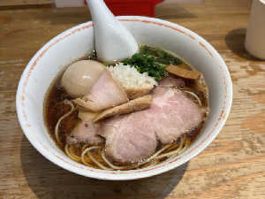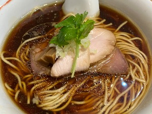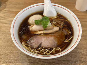 見た目より味濃いめのしっかり醤油ラーメン! 軍鶏のチャーシューが美味しい!