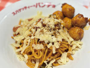 名物のナポリタンを。大盛りはかなりボリュームありました。