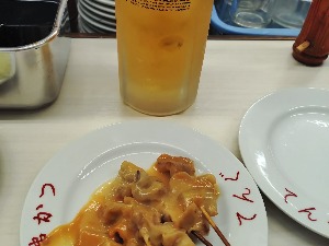 八重勝もいいけど、てんぐもうまいなあ。と再確認。こちらはどて焼きも串カツも一本単位で注文できます。