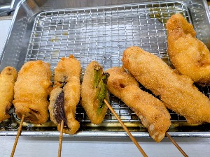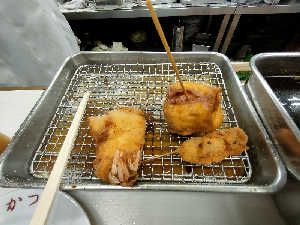 厚めの衣でボリューム満点!卵は、ウズラではなく鶏の卵!ウインナーが美味かった。どて煮は、絶品✨