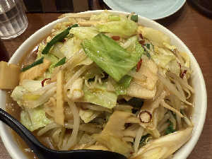 初挑戦。通常のベトコンラーメンに輪切り唐辛子やキャベツ白菜イカゲソがプラス。発汗と米が進む。