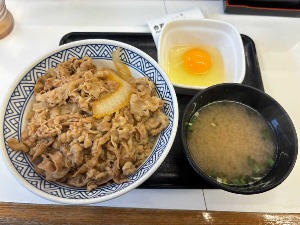 朝牛セット(アタマの大盛)小鉢玉子