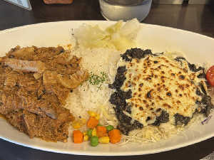 水一滴も使わないパキスタンカレー&スパイスと黒ゴマで仕あげた方も美味♪次回はラムビンダルーを頼みたい