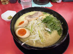 麺硬め脂多め味濃いめ、ライス付けちゃうよね、仕方ないよね、アフターサウナたしね
