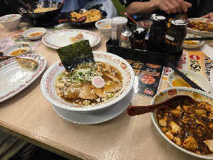 食べがいあり。具だくさんで、特に肉厚の椎茸がジューシーで旨い。もちろん定番の餃子も文句無しの味。