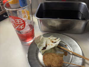 若鳥串は骨でスマセン。梅田構内細い路地を入った食堂街の一角。立ち飲み、古き良き雰囲気が良い。