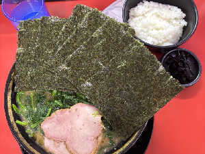 麺場の人にもあぶら少なめの人と覚えられた。YouTubeではじめパパオススメの海苔をトッピング
