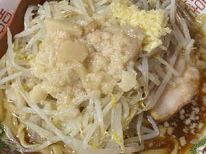 醤油が強めの非乳化。二郎系で過去一好きだった。店主の優しい瞳が印象的( ゚Д゚)アブラコール!