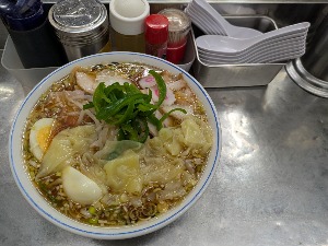 サウナ前に🍜 850円安い! ワンタンは具なしで皮のみ、麺がそばみたい、接客◎💯