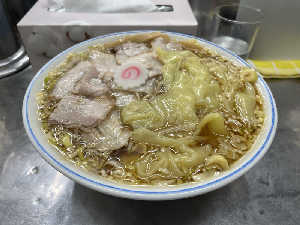 スープに鳥か野菜の甘みがすごく出てるやーつ。ワンタンがしっかり吸って美味いしボリューミー