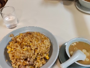 サウナ前、有名なチャーハンいただきました。 しっとりしていてうまい!