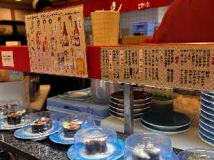 朝7時までやっている回転すし屋さん。 どのネタも美味しい😋 馬刺しやくじら等があるのもいいですね❗️