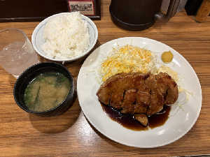 肉はサクサク噛みきれて美味しい❗️ ライス大盛のおかわり放題で腹パンです。